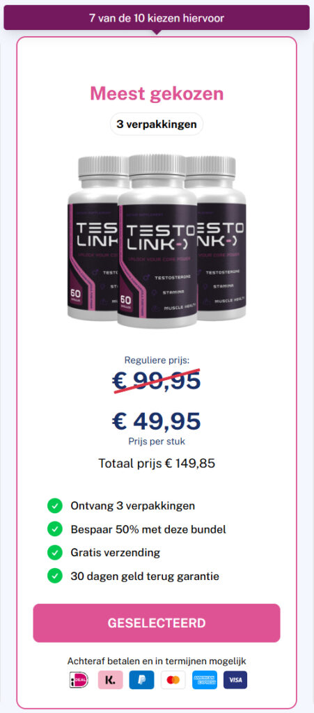 Natuurlijke ingrediënten: TestoLink™ gebruikt zorgvuldig geselecteerde, natuurlijke actieve stoffen die specifiek de kracht en het uithoudingsvermogen van mannen ondersteunen.